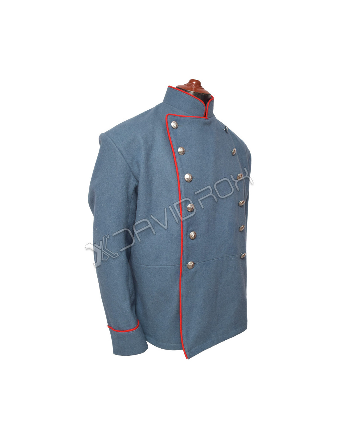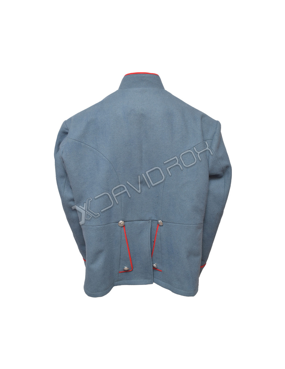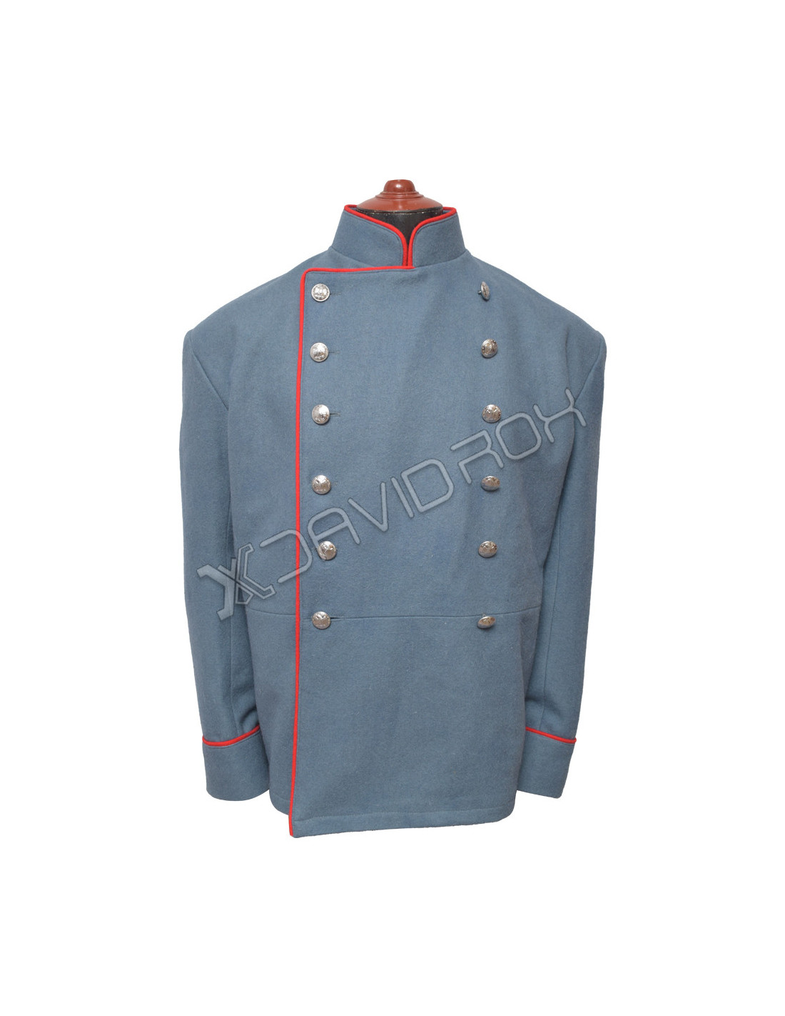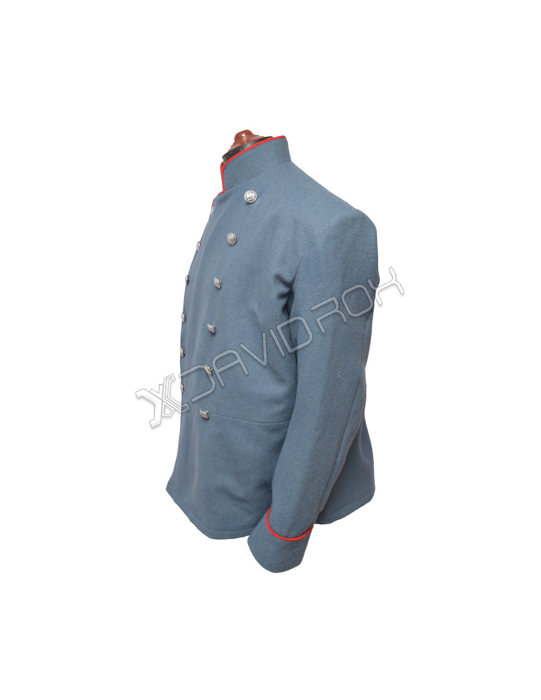 Russian Field Gendarmerie Officer Tunic Coat. This elegant tunic coat, crafted for Russian Field Gendarmerie officers, exudes authority and sophistication with meticulous details and craftsmanship. It is an ideal piece for collectors, reenactors, or enthusiasts of historical military attire.