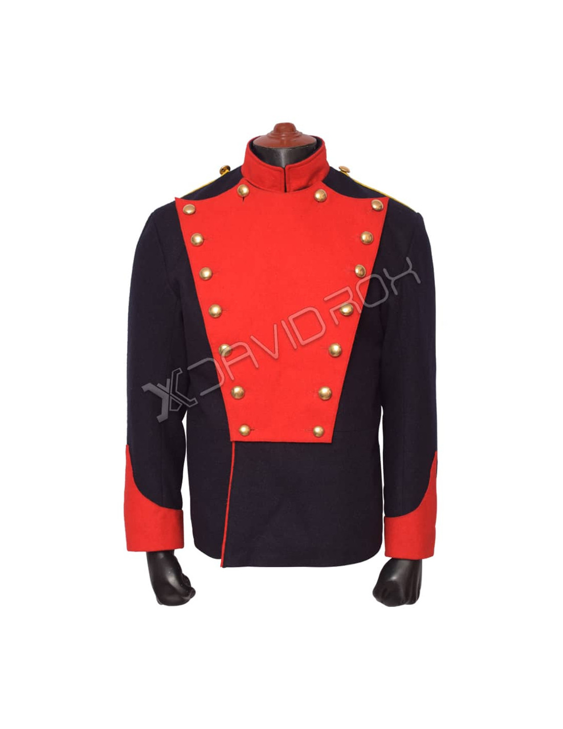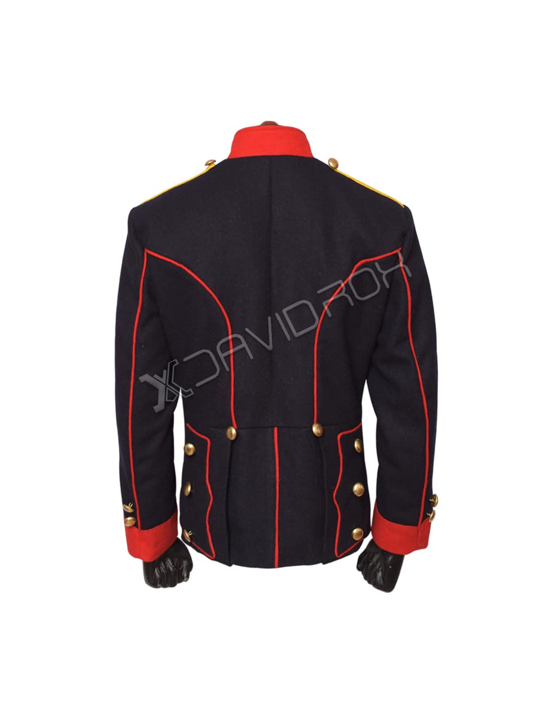 - Red with Black Coat: Features brass buttons for a refined military finish.