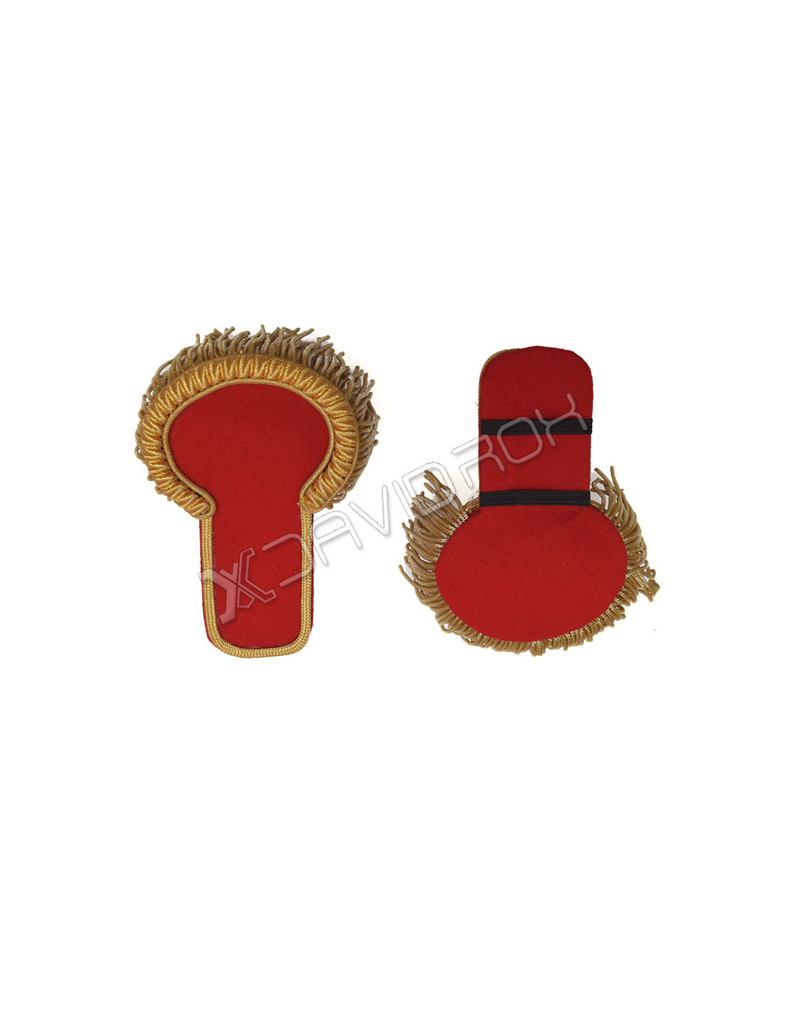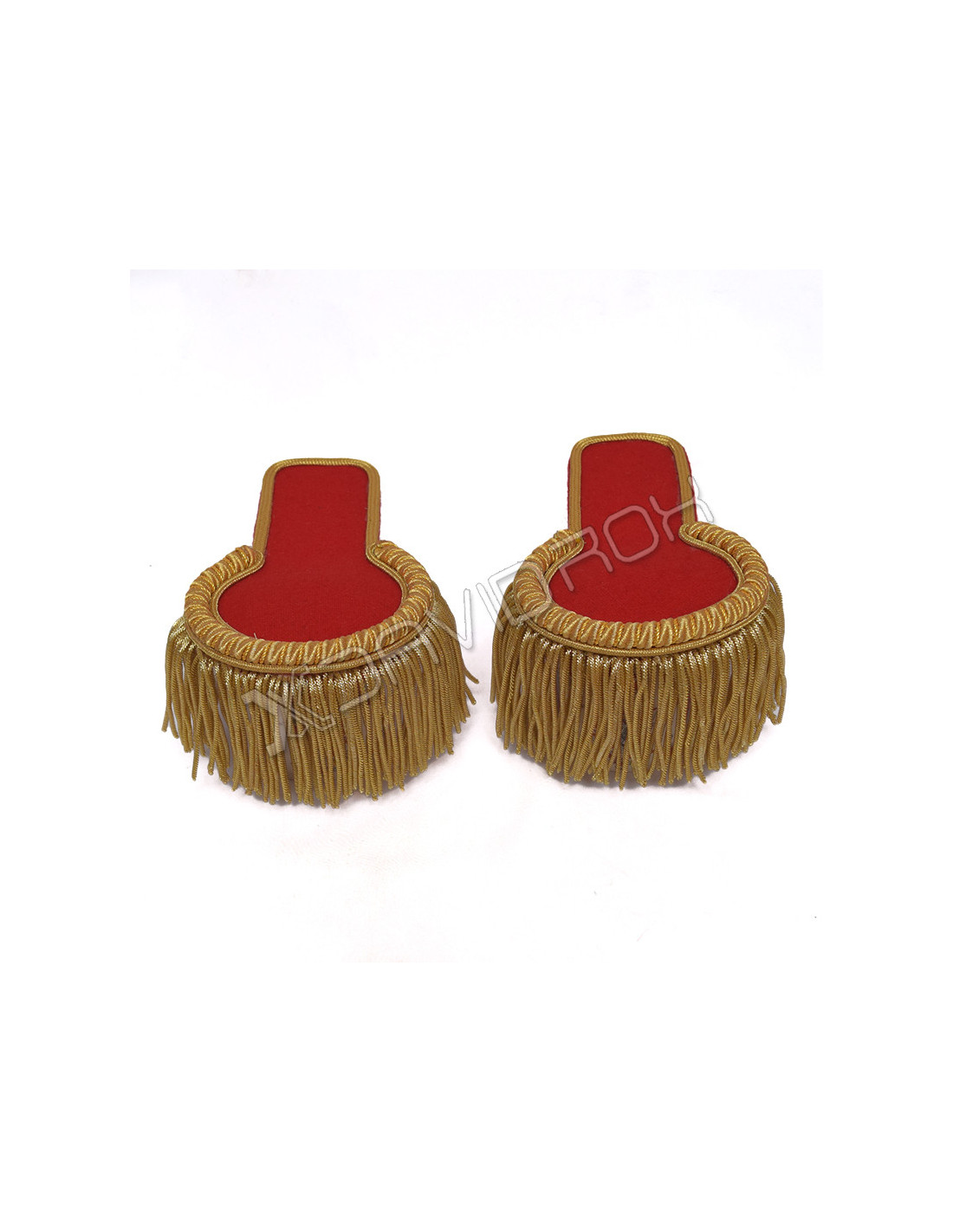 Red Blazer Gold Fringe Marching Epaulettes. Bold and regal ensemble, these epaulettes seamlessly blend sophistication with commanding presence, making them a standout addition to formal and marching band attire.