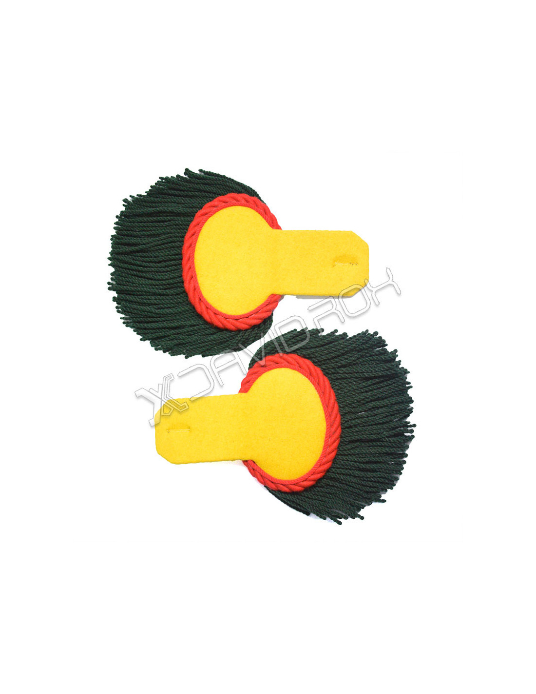 Yellow Wool Shoulder Green Epaulette Pair. Vibrant and visually dynamic military accessory, these epaulettes blend bold colors with classic refinement, symbolizing tradition, courage, and resilience.