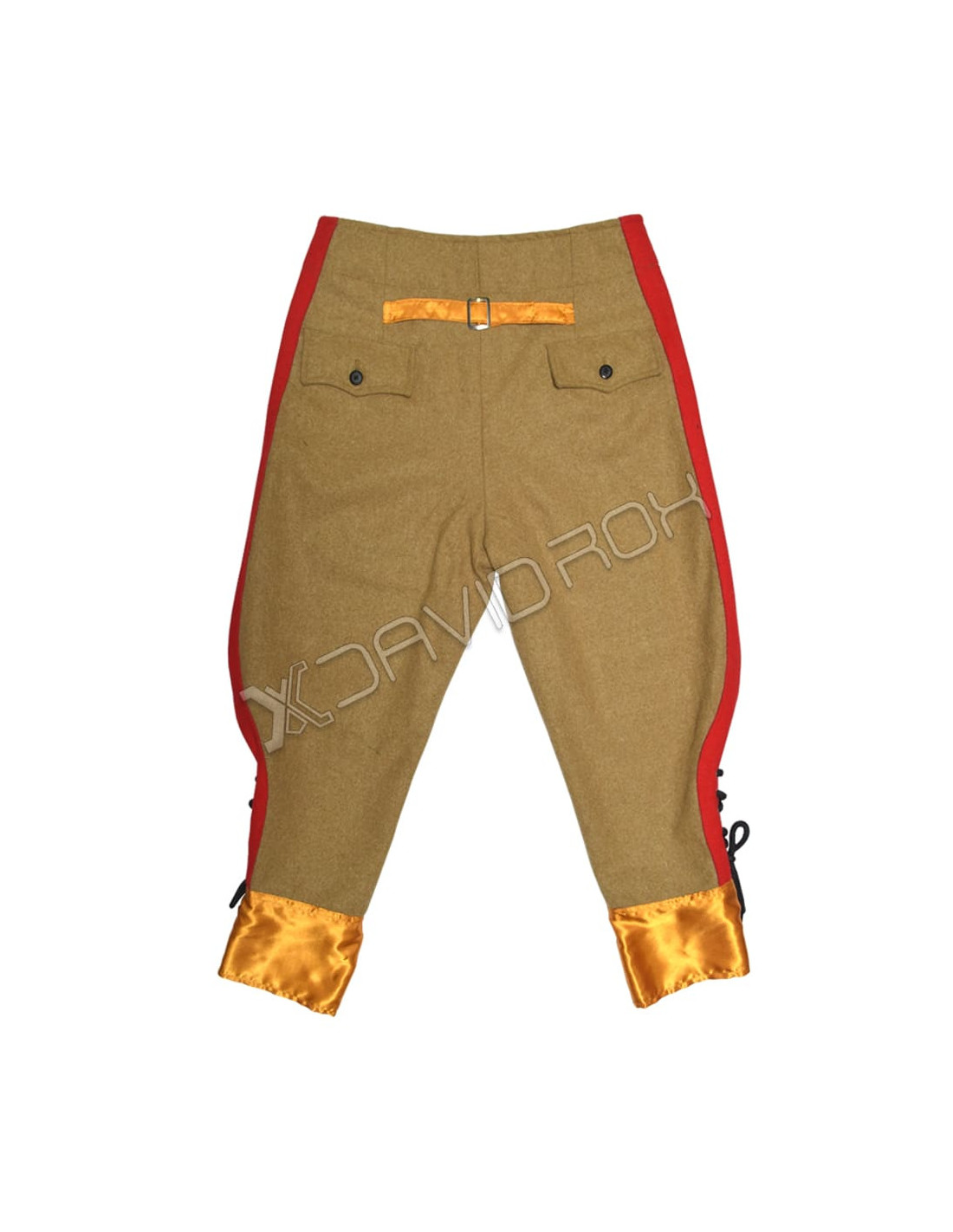 WW2 Heer General Breeches. Historically accurate reproduction of German Army General jodhpurs from World War II, these breeches showcase premium craftsmanship and distinctive military styling. Designed for reenactors, collectors, and military history enthusiasts, they blend authenticity with practicality.