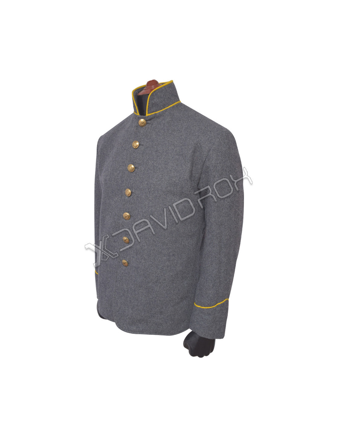 - Trim & Buttons: Artillery yellow piping on the collar and cuffs, featuring a 7-button front with CSA buttons.