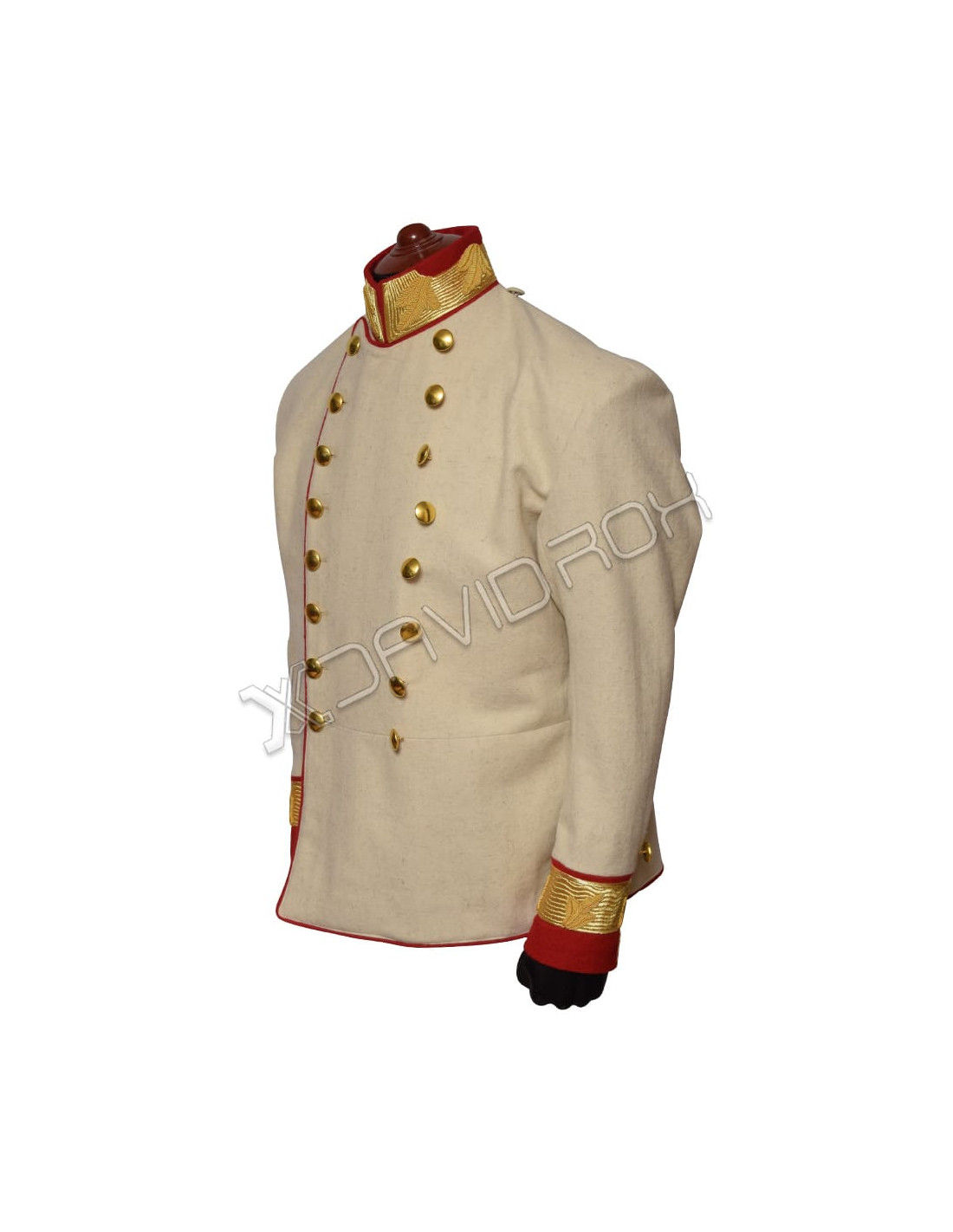 Kaiser Franz Joseph Hungarian Kings Jacket. This elegant tunic coat, inspired by Kaiser Franz Joseph I of Austria, reflects the grandeur and authority of his personal campaign uniform from 1916. It’s a timeless piece that combines historical authenticity with refined craftsmanship.