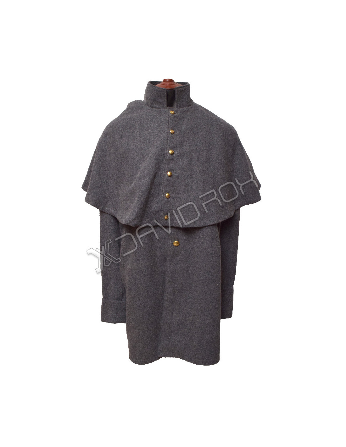 CS Infantry Gray Greatcoat. Versatile and historically inspired greatcoat, the CS Foot Budget Line Short Greatcoat embodies classic Confederate military style while offering modern value. Designed for durability and comfort, it seamlessly blends authenticity with practicality.Material: