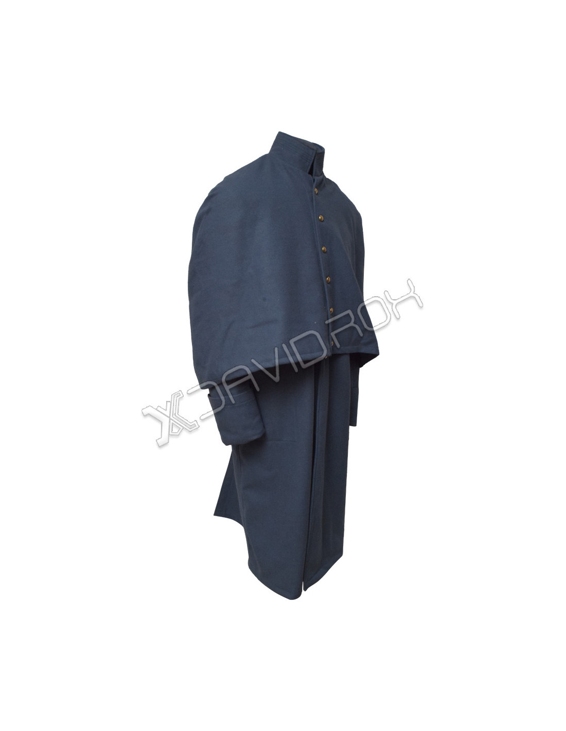 Dismounted Greatcoat Civil War Blue Greatcoat. Step into history with this authentic reproduction, capturing the style and durability of Civil War-era outerwear. Traditionally worn by dismounted troops, this greatcoat provides warmth and resilience, honoring the uniforms of soldiers from the Civil War.