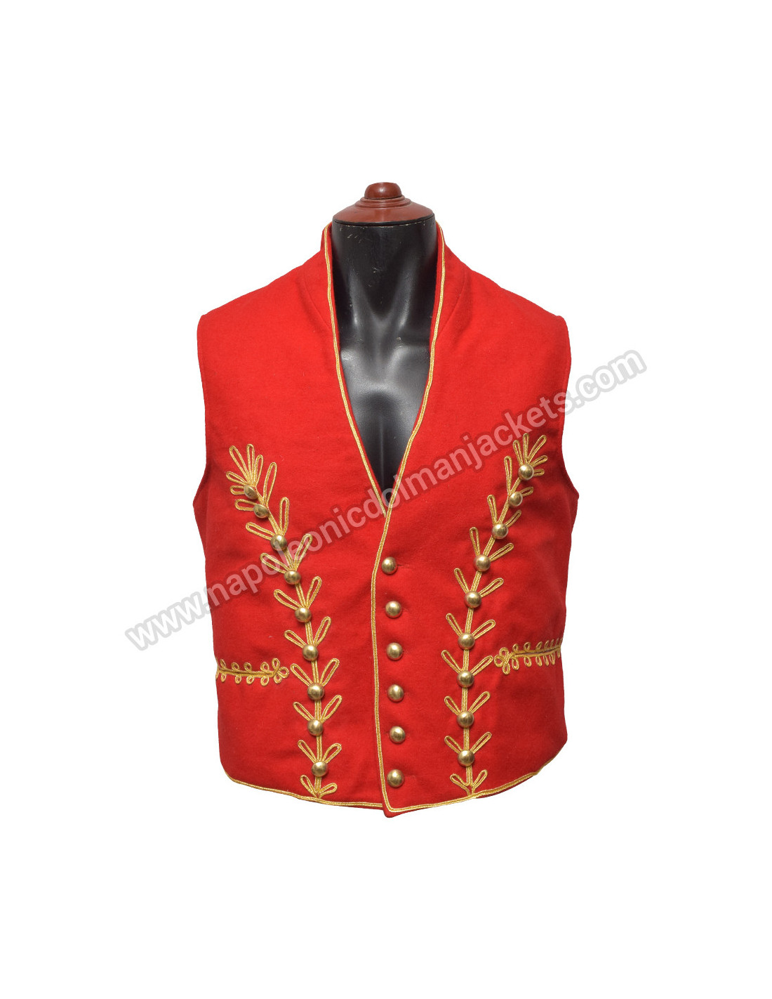 Hunting Light Cavalry 27th Officer Vest. Distinguished reproduction of Napoleonic military elegance, this 27th Hunting Light Cavalry Officer’s Vest pays homage to the elite Chasseurs Regime of the First Empire. Designed for history enthusiasts, reenactors, and collectors, it captures the refined craftsmanship and prestigious legacy of the 27th Light Cavalry.